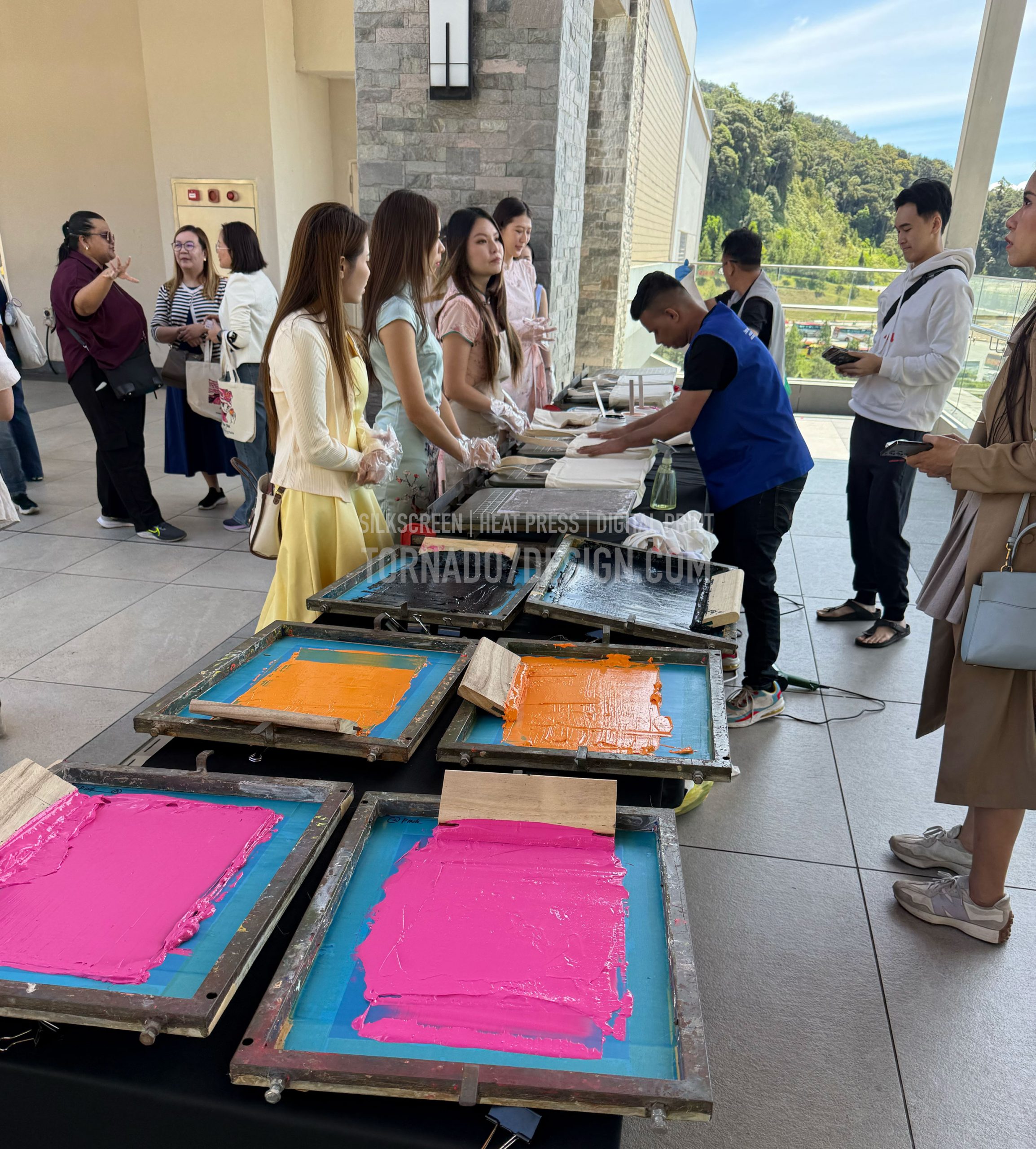 This time, we brought our silk screen printing setup to Genting Premium Outlets for a live outdoor event.Working alongside an agency and local artist Kenji Chai. Printing on-site, surrounded by nature and people, creates a completely different energy compared to a factory environment.